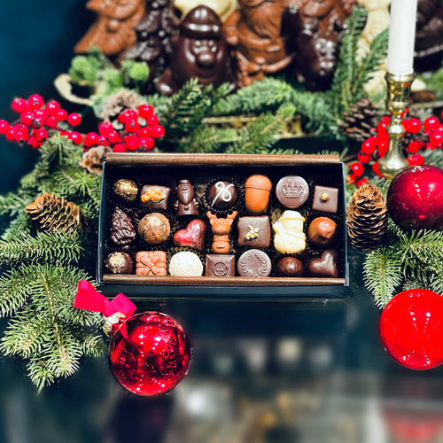 Æske med 21 styk fyldt chokolade